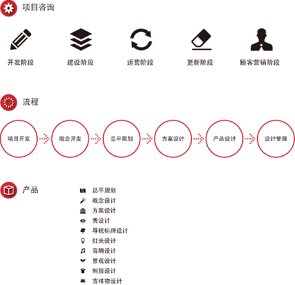 我司从2000年开始置身于主题乐园项目开发中,从2006年开始参与中国的度假村、主题商业的开发,并积累经验。我司项目的成功是基于每个阶段与国外公司的紧密联系和协同工作终而达成的。